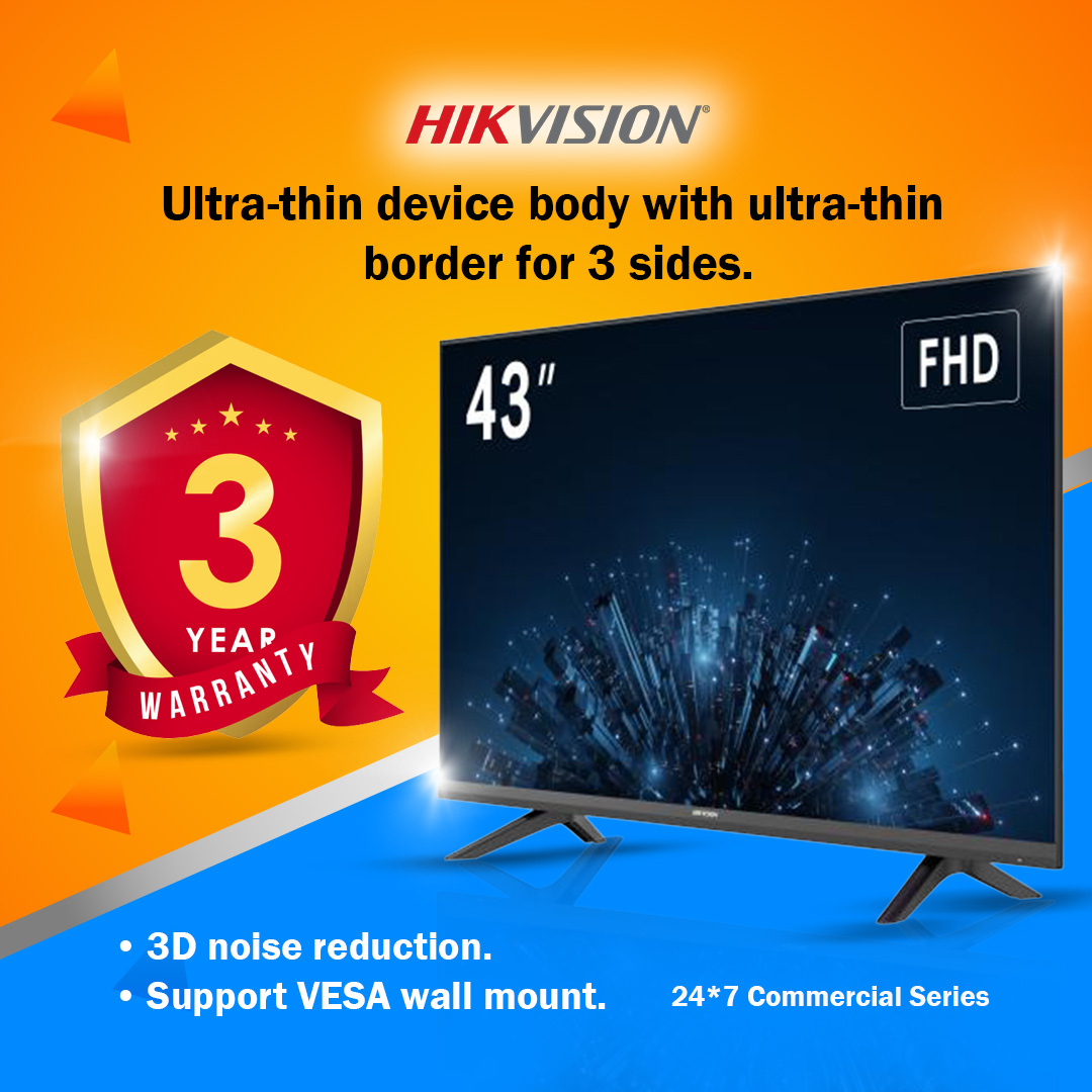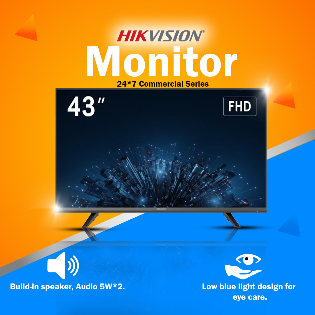 Experience sharp visuals and wide viewing comfort with the Hikvision 43-Inch Full HD VA Monitor (EU). Designed for professional and personal environments, this display offers 1920×1080 resolution, 300 nits brightness, and 60Hz refresh rate for smooth visuals. Its ultra-thin 3-side bezel design enhances aesthetics while maximizing screen area.