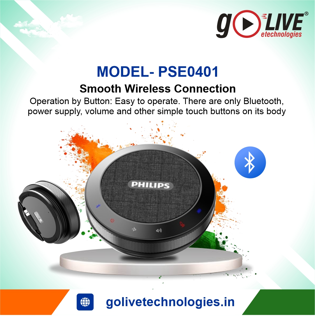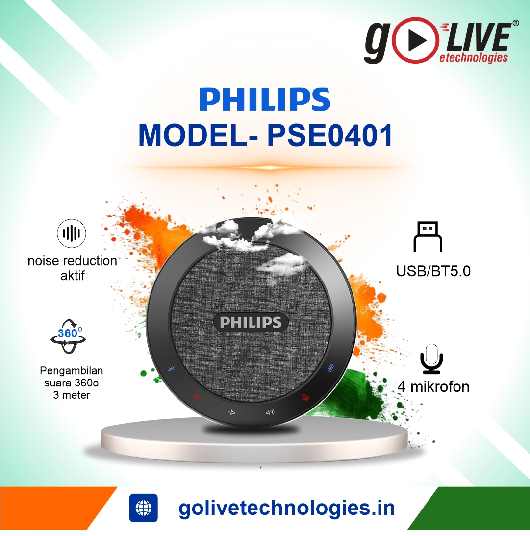 Philips PSE0401 is a professional Bluetooth and USB conference speakerphone with 360° sound pickup, 4 MEMS microphones, intelligent noise reduction, full-duplex communication, and dual 40mm speakers—ideal for small to medium meeting rooms.