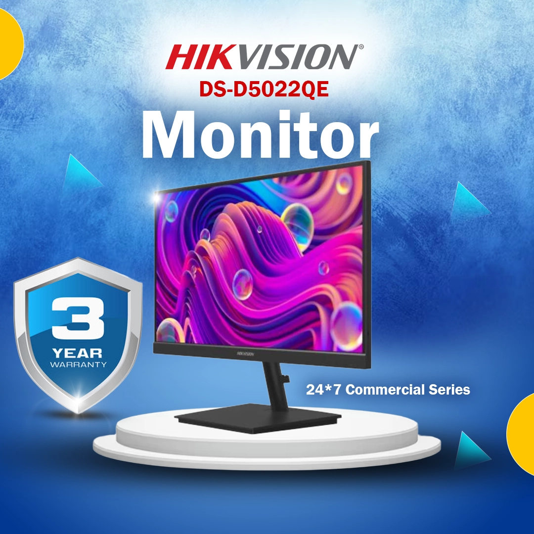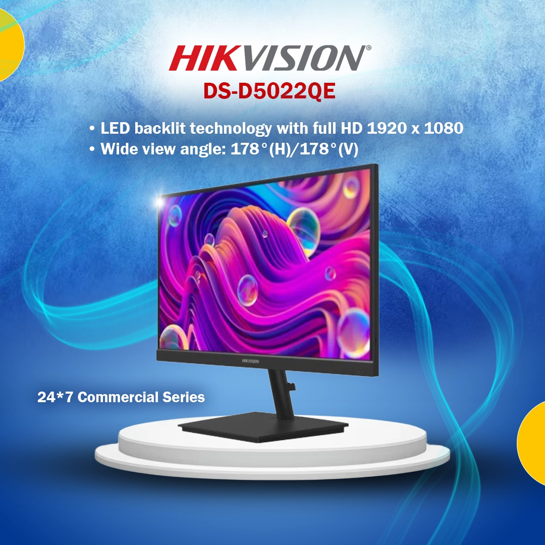 Experience ultra-smooth visuals with the Hikvision DS-D5022F2-1P2 21.5-inch FHD IPS Monitor featuring 100Hz refresh rate, 178° wide view, low blue light, and dual HDMI/VGA connectivity.