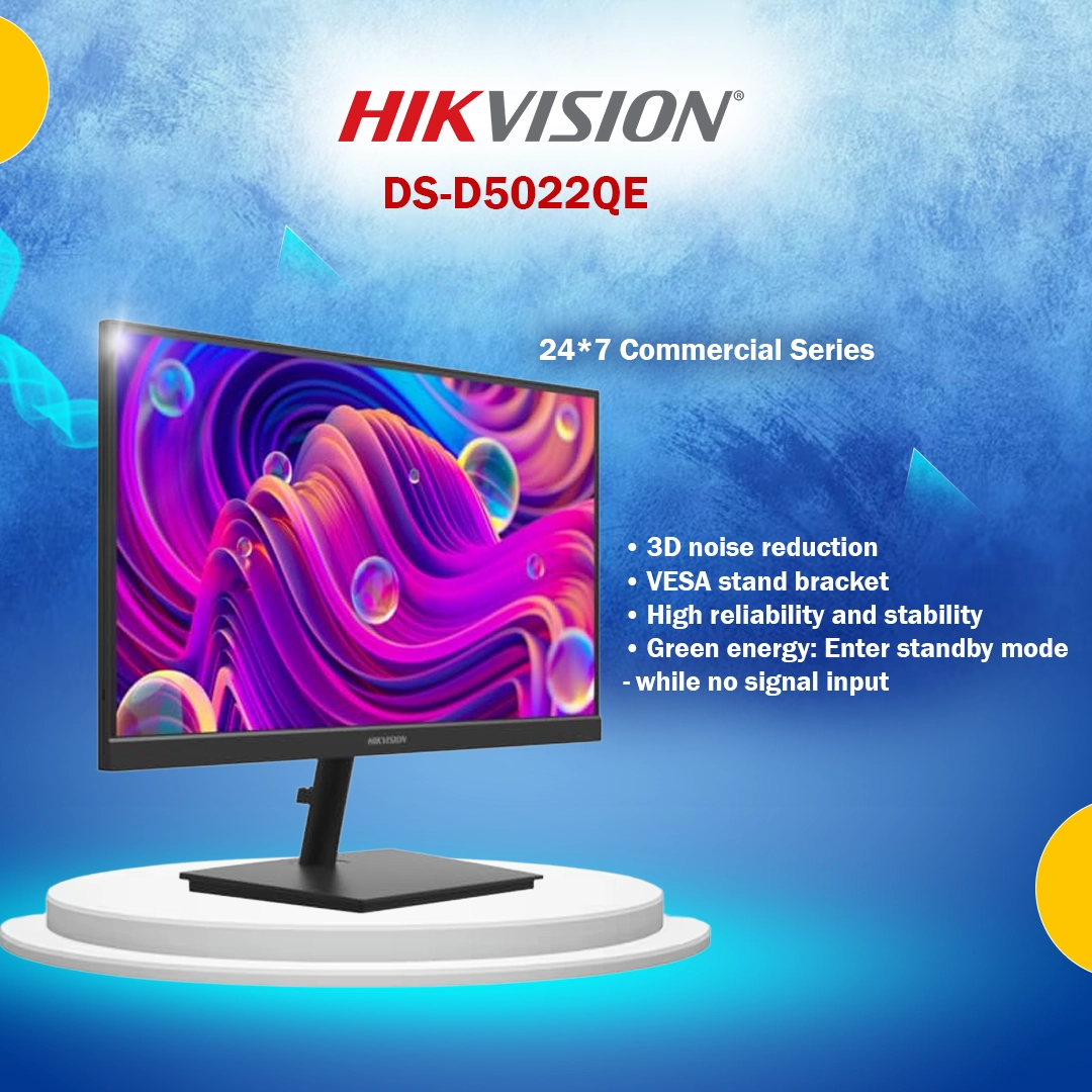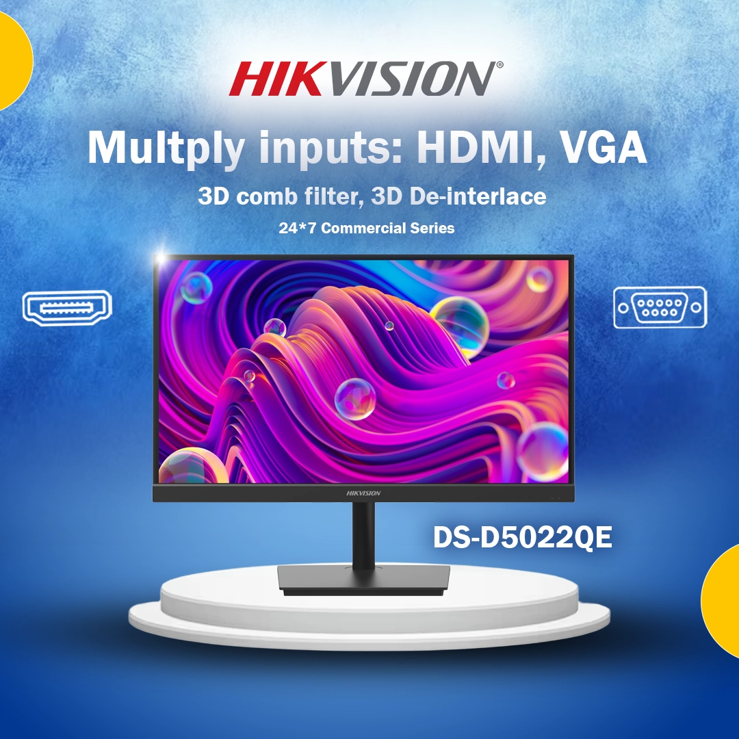 The Hikvision DS-D5022F2-1P2 is a 21.5-inch Full HD IPS Monitor designed for professionals, gamers, and multimedia users seeking crystal-clear visuals and smooth motion. Featuring a 100Hz refresh rate, this display ensures life-like motion and reduced blur during fast-moving scenes.