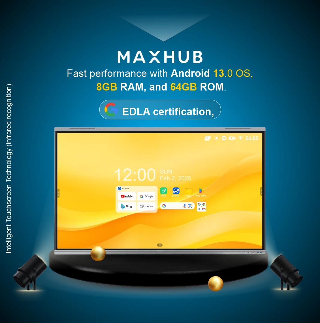The MAXHUB U7530 (U3 Series) is a premium 75-inch 4K UHD Interactive Flat Panel designed for modern classrooms, training centres, and corporate boardrooms across India. Powered by Android 13 with Google EDLA certification, it delivers seamless access to Google Workspace apps, secure enterprise deployment, and AI-powered collaboration tools.