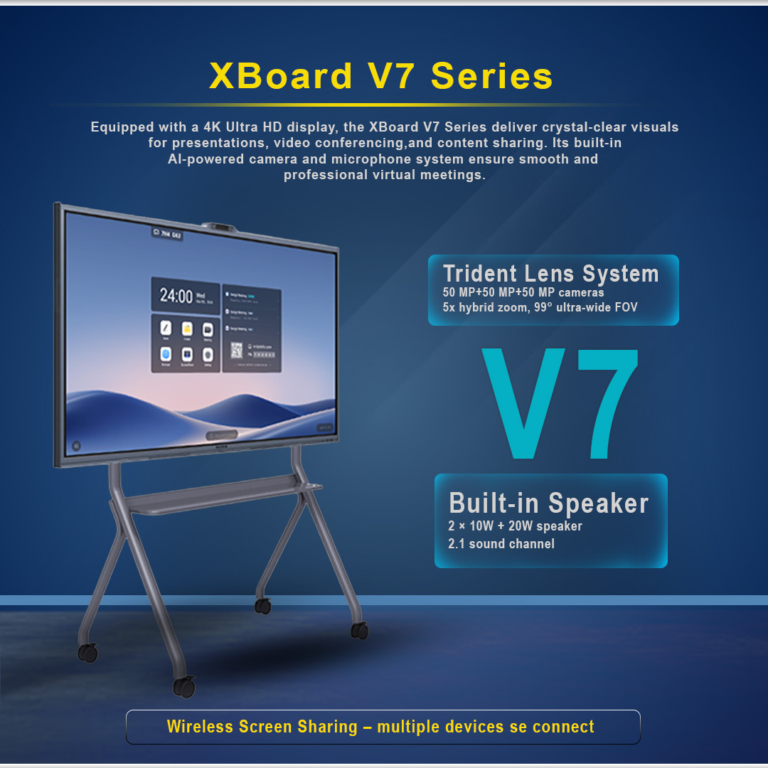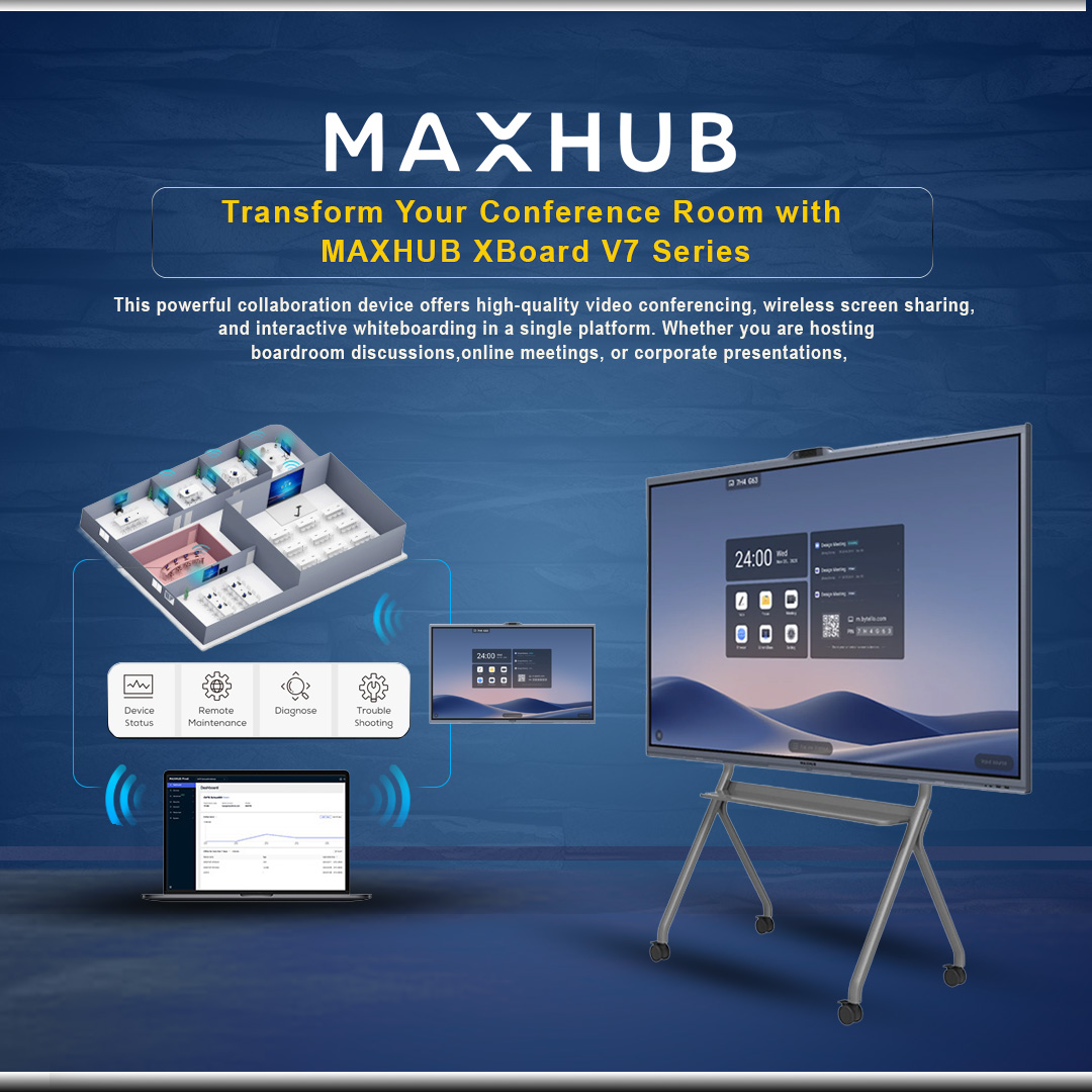 The MAXHUB XBoard V7 V6550 is a next-generation 65-inch 4K interactive flat panel designed for modern workplaces, classrooms, and hybrid collaboration environments. Built with a powerful Windows-based PC module (12th Gen Intel), this all-in-one display combines video conferencing, smart whiteboarding, AI audio, and ultra-precise touch into a single seamless system.