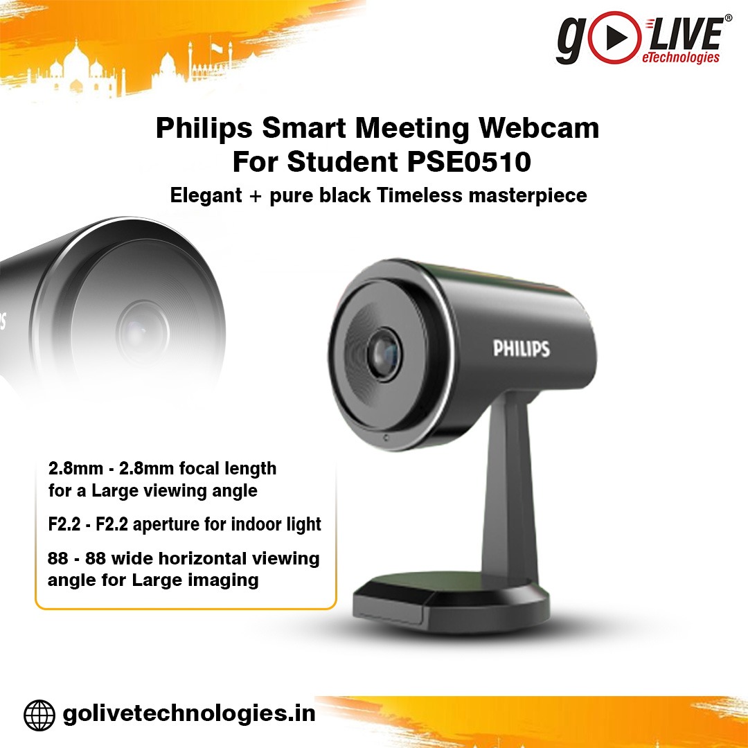 Philips PSE0510 is a Full HD 1080p smart webcam with wide-angle lens, built-in microphones, driver-free USB setup, and clear audio-video performance for online classes and meetings.